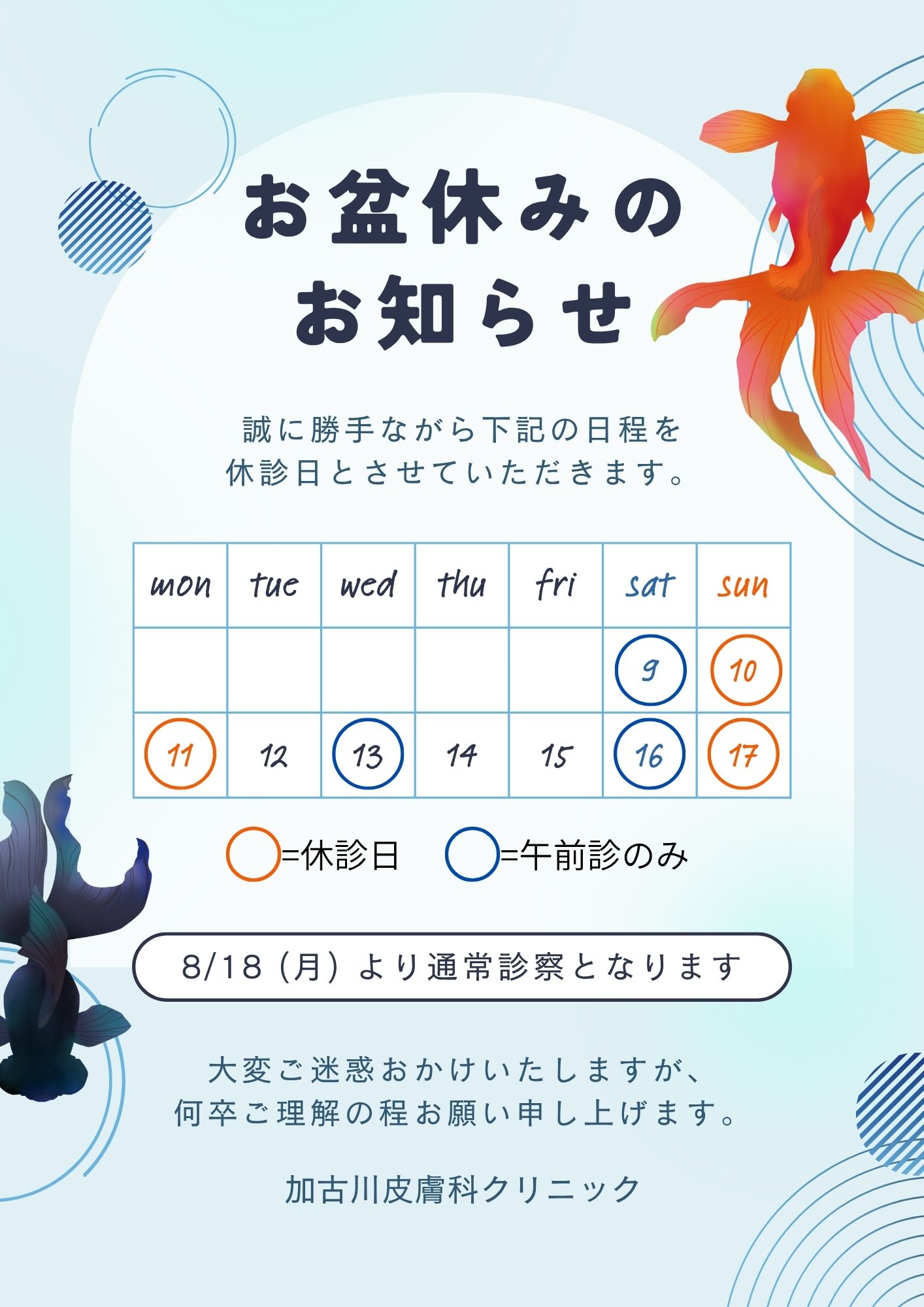 お盆期間の休診日 2025.07.29 Tweet Share Hatena Pocket RSS feedly Pin it この記事のタイトルとURLをコピーする Tweet Share Hatena Pocket RSS feedly Pin it この記事のタイトルとURLをコピーする ZO SKIN HEALTH(ゼオスキンヘルス)価格改定についてのお詫び 前の記事 インフルエンザ予防接種のご案内 次の記事